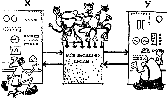 О. Ну и остряк! Наша игра в тысячу раз интересней! Машины изолированы друг от друга. Единственная связь — через эквивалент межзвездной среды.