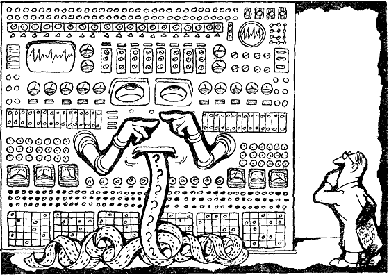 Учетные задачи вездесущи. Вот пример. В одном из южных городов в агентстве Аэрофлота в самый разгар лета — неприятнейший сезон для передвижений — отпускник в мрачной тоске стоит перед длиннейшей очередью к окошечку диспетчера по бронированию, размышляя, то ли идти ему пешком, скажем, через Москву в Горький, то ли потратить это время в очереди. Как избавление от казни звучит объявление, сообщающее, что бронирование мест в Москве осуществляется в соседнем зале с помощью соответствующей автоматизированной системы…