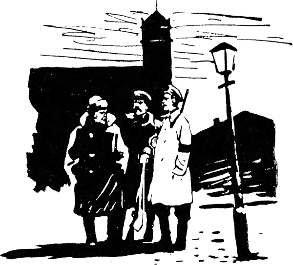 Над городом плыл тягучий колокольный звон — в церквах звали к заутрене. Сквозь темь ночи пробивался неторопливый зимний рассвет. Сторожа собирались вместе, говорили о том, о сем. «Нынче, вроде, не кричали». — «Какое не кричали — было». Вздыхали (больше для порядку — ко всему уж привыкли в последнее время) и шли по домам. На улицах появлялись первые прохожие.