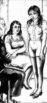 В приёмной при кабинете были уже собраны и закрыты на ключ согрешившие послушницы, которых на этот раз - видимо в связи с приездом преподобного - набралось значительно более обычного. Три дюжих тётки должны были готовить грешниц к воспитательному акту: по очерёдности, то есть по убыванию тяжести провинности, разоблачать негодниц и заводить их в кабинет. Остальные, сидя на длинной скамье в страхе и слезах дожидались своей очереди.