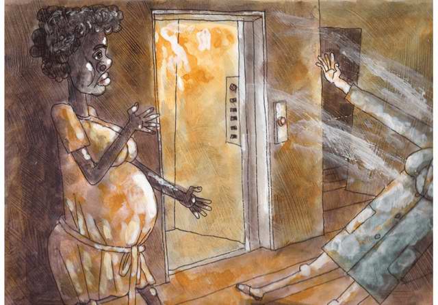 Всё это время африканка находилась в сильном смятении, понимая, что каким-то образом причастна к происшествию. Она посматривала из своего укрытия за происходящим и никак не могла решить: уже пора выходить или ещё нет.