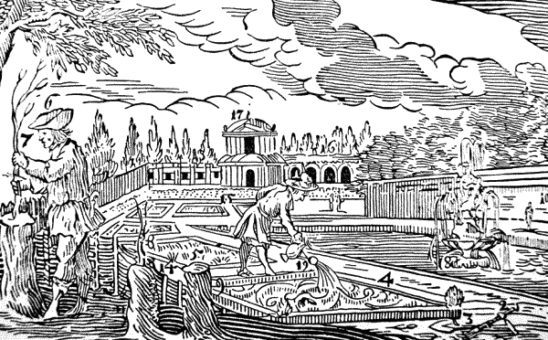 Украшают сад дорожками (16) и беседками (17). Орошают фонтанами (18) и лейками (19).