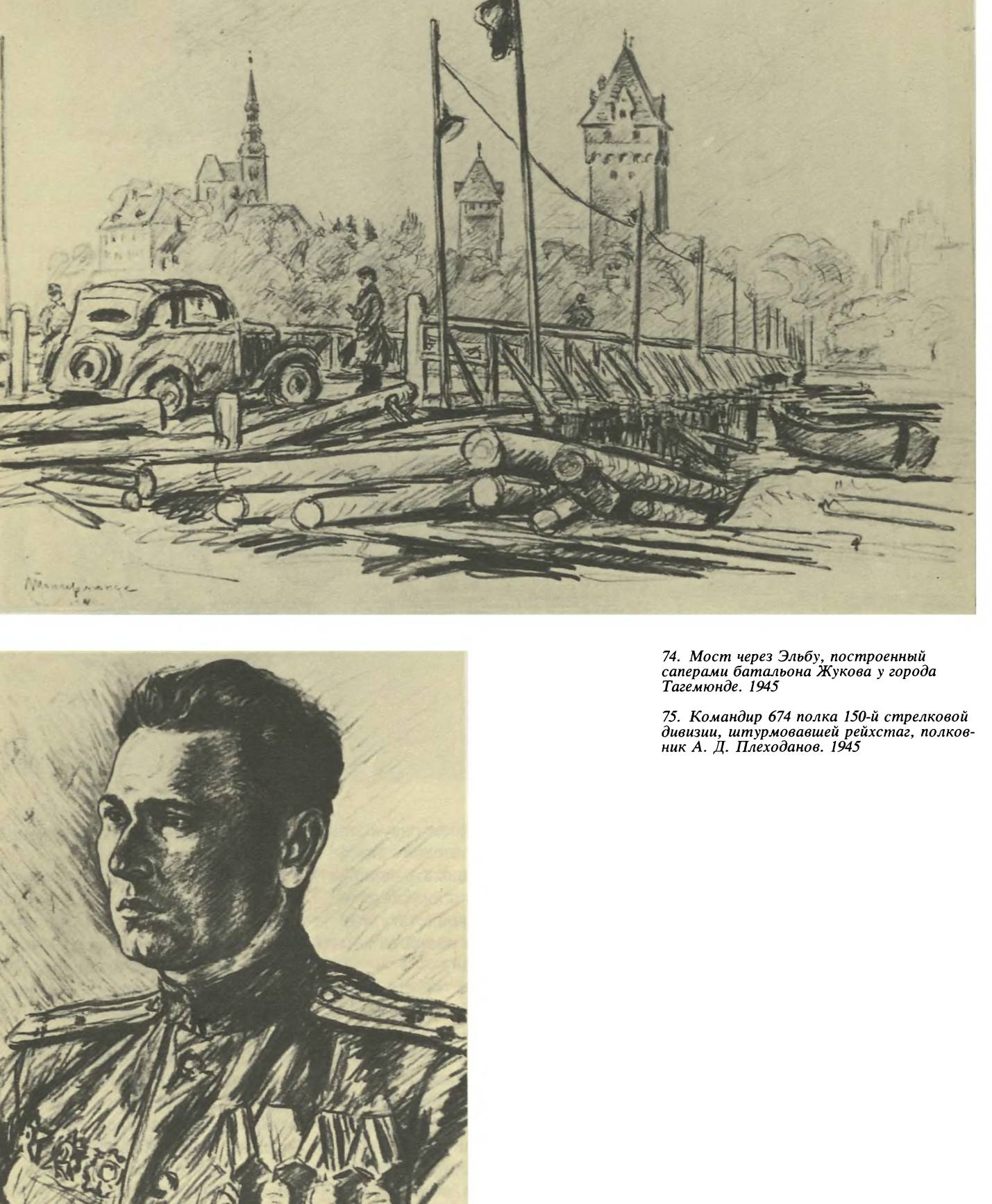 Мы поговорили о моем рисунке, о выбранном месте, так ему знакомом. Не желая отвлекать меня от работы, полковник попрощался и пошел к «своему» рейхстагу, где он расположился в одной из комнат нижнего этажа.