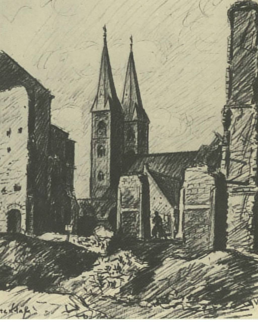 Я отправился бродить по городу, высматривая наиболее характерные пейзажи. Какой-то военный, прикрепив холст к автомашине, писал этюд. Я подошел поближе: вдруг окажется знакомый. В эти дни я встретил немало людей, с которыми меня сводила судьба в разные годы войны. Мне даже стало казаться, что все фронтовые дороги вели в Берлин. Но этого человека я не знал, и, мысленно пожелав ему успешной работы, я пошел дальше.