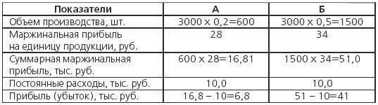 Выгоднее производить изделие Б, так как маржинальная прибыль на единицу выше. Проверим принятое решение путем расчета прибыли предприятия (табл. 5.12):