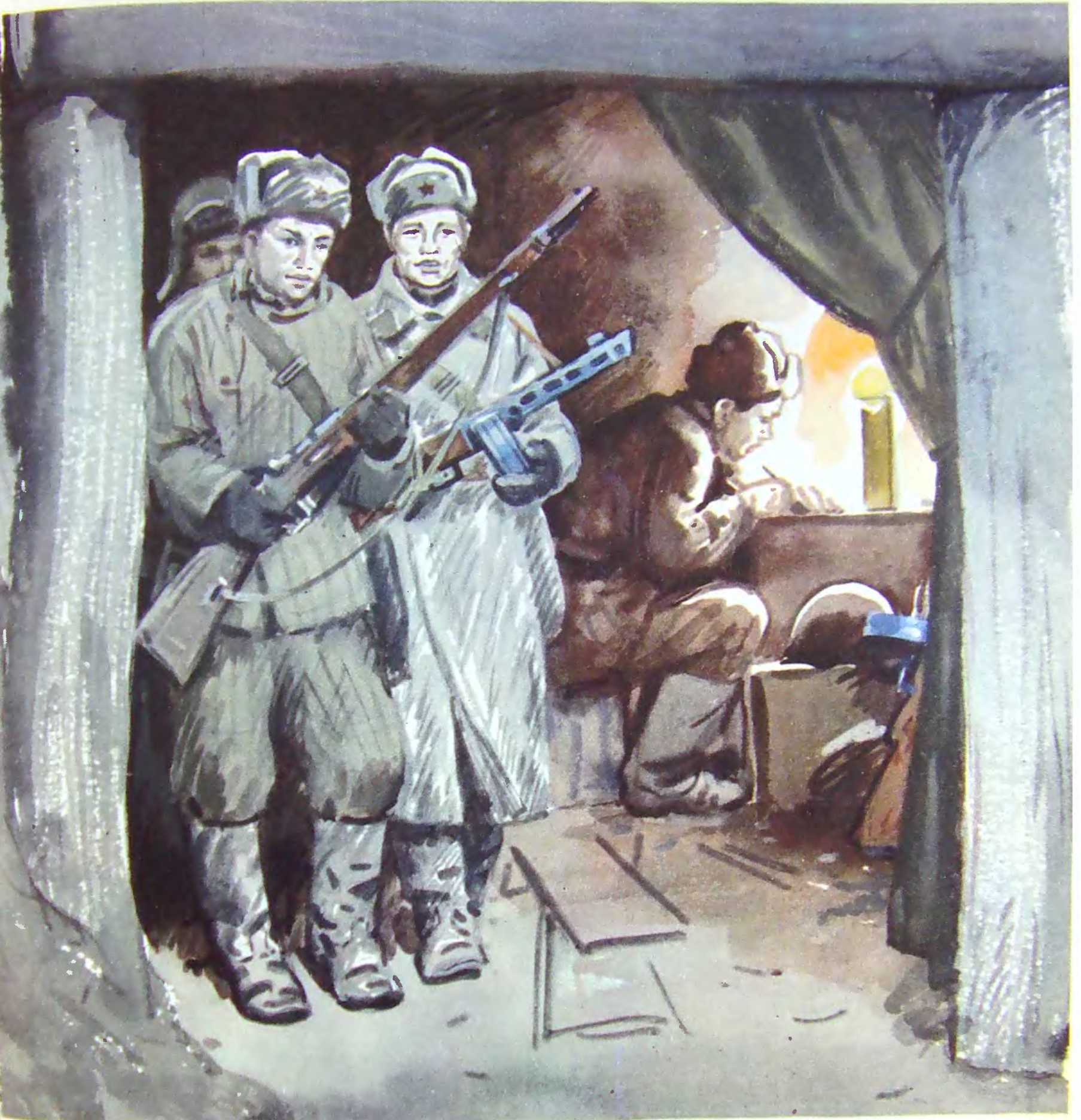 Наташа водила сельских мальчишек, с которыми довольно-таки быстро знакомилась в дороге, но «дедушкиным местам» и без запинки объясняла им, как фашисты, наступая ка Москву, задумали обойти об сразу с двух сторон: с севера — через Ржев — Калинин и с юга — через Орёл — Тулу, как, захватив много наших городов, они надеялись сомкнуть свои полки за Москвой, окружить столицу и провести зато" на Красной площади парад своих войск.