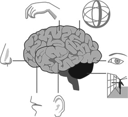 Рис. 3. Доли мозга, отвечающие за различные органы чувств