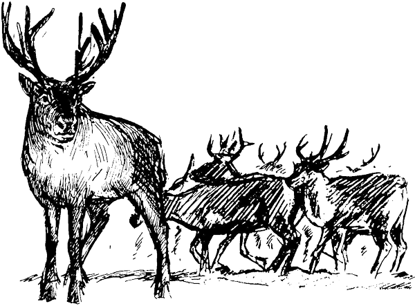 Ночь прошла тихо: топтыгин не давал о себе знать. Утром, выполняя свою обычную обязанность принести воды, Василек отправился к ручью. Возвращаясь обратно, он увидел, что в ограде мечутся два крупных оленя. Все олени стоят спокойно, а эти носятся вдоль изгороди, отыскивая выход.