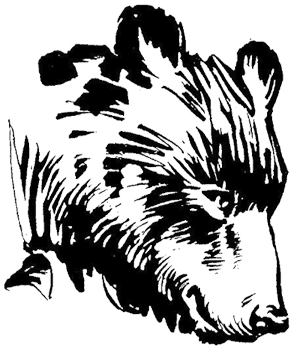 Неожиданно из-за толстого дерева высунулась голова крупного медведя, который шел по следу раненой медведицы. Взгляд бурого космача, не предвещавший ничего хорошего, вначале остановился на черном медвежонке с белой грудкой, а затем устремился к лежащей в бочажке медведице.