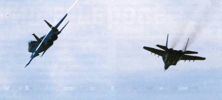 МиГ-29УБ и F-15D расходятся в воздухе, чтобы сойтись в учебном воздушном бою «один на один»