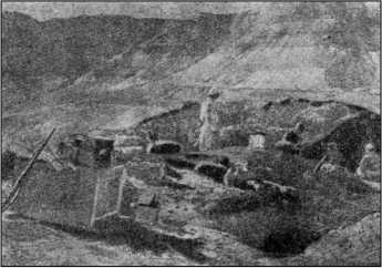 Тургайские раскопки. Разработка костеносного пласта; посередине — кости в глиняных кожухах, заделанные для отправки.