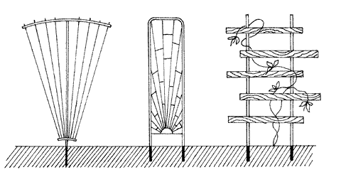 Рис. 16. Виды пристенных каркасов для вьющихся растений