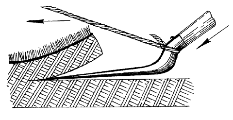 Рис. 24. Нарезка дерна с помощью лопаты шириной 25 см и веревки