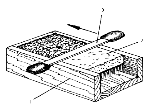 Рис. 28. Специальный ящик для выравнивания дернины: 1 – ящик; 2 – дернина, уложенная травостоем вниз; 3 – нож с двумя рукоятками