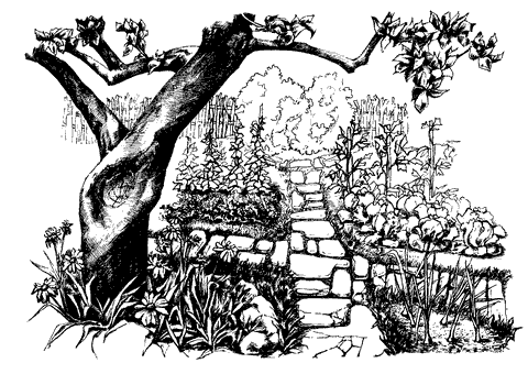 Рис. 30. Участок с прямыми дорожками, мощенными природным камнем