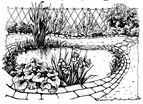 Существует огромное количество видов фонтанов, различающихся по стилю, устройству, мощности, размеру, оформлению (скульптурное или архитектурное). Среди всего разнообразия выделяют основные типы фонтанов: с галькой, жерновым камнем, фонтан-родник, из одной водной струи, многоструйный, с одной чашей, из нескольких чаш с переливом воды, с использованием скульптур, с разбрызгивателем (рис. 67).