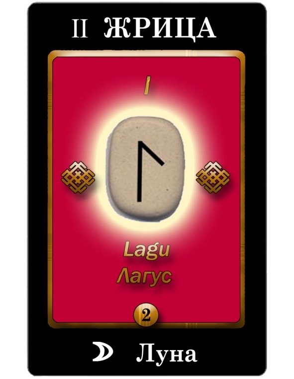 2. Второй нумерованной Картой в главной колоде является Жрица, или Папесса. Она ассоциируется с вечно женственным началом и символизирует аспект Евы до грехопадения. Одновременно она является женской ипостасью Мага. Она несет в себе Тайный аспект Знаний, ей открыты Тайны Мирового Пространства. Она – хранительница преданий и управляет невидимым порядком.