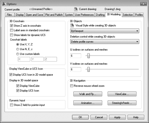 1. В диалоговом окне Options (Настройки) щелкните мышью по названию вкладки 3D Modeling (Трехмерное моделирование).