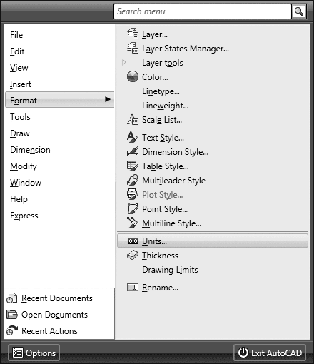 3. В открывшемся подменю выберите пункт Units (Единицы измерения). Откроется диалог Drawing Units (Единицы измерения при черчении) (рис. 3.4).