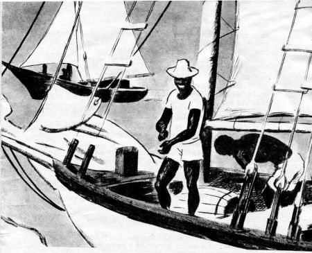 Но только ребята собрались повернуть к дому, как увидели, что неподалёку бросила якорь лодка и из неё вышло несколько человек, а среди них — папа Жан. Все они зашлёпали по мелководью к берегу, и Попо был страшно удивлён, потому что не ждал папу Жана в такую рань. Он не думал, что уже время возвращаться с рыбной ловли. Но это был действительно папа Жан собственной персоной, и по всему заливу можно было видеть ещё много мелких судов, которые тоже направлялись к берегу, пользуясь попутным ветром, который дул с моря на сушу. Закатное солнце освещало надутые, трепещущие белоснежные паруса, и всё вместе было до того красиво, что увидишь — так не скоро позабудешь!