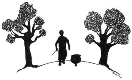 І хоч до кінця тижня селяни більше не підходили до чаклунової оселі, щоб попросити помочі, та казанок усе одно торочив йому про їхні численні біди й хвороби.
