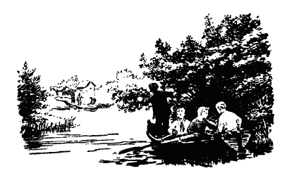 Білястий туман оповивав річку. Береги ледь виднілися. Кущі верболозу сягали майже до середини річки. Товсті стовбури дерев лежали над самісінькою водою. Генка і Славик мало не зачіпали за них веслами. Але Жердяй, що сидів на кормі, майстерно правив човном по вузькій, звивистій річечці.