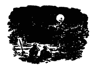 За кілька хвилин три маленькі в'юнкі тіні швидко промайнули краєм просіки, прямуючи назад, у табір.