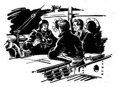 — Для цього є ще одна хитрість. Дивись! — = Черепанов узяв важкий свинцевий пояс, що лежав на кормі і показав Гойді. — Коли треба, можу втратити плавучість. Варто лише відтягнути на короткий час комір сорочки від шиї, і водяний тиск витягне з «подушки» через щілину між шиєю і сорочкою чималу порцію повітря. Я стану важчим кілограмів на двадцять і піду на глибину.