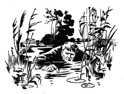 — Дякую. Ми давно облюбували це місце, уважно вивчили його по лоції і передбачили, що може передбачити людина. Погляньте на карту! Ідеальний плацдарм для такої операції, як наша. Вода, вода! Чудовий простір для людей-жаб. Цей головний шлях зв'язаний з другорядними численними протоками, річками, єриками, великими і малими озерами. Ми могли, не виходячи з води, пробитися на схід і захід, північ і південь.