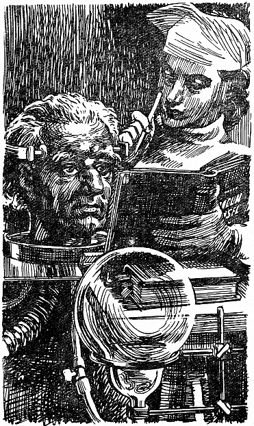 На обличчі професора Доуеля з’явився невдоволений і нетерплячий вираз. Голова виразно глянула на Лоран, потім на кран, від якого тягнулася трубка до горла голови, і двічі звела брови. Це означало прохання. Лоран зрозуміла: голова хоче, щоб відкрутили заборонений кран. Уже не вперше голова зверталася до неї з таким проханням. Але Лоран пояснювала бажання голови по-своєму: голова, напевне, хоче покінчити зі своїм безрадісним існуванням. І Лоран не наважувалася відкрутити заборонений кран. Вона не хотіла бути винною в смерті голови, боялась і відповідальності, боялась втратити роботу.