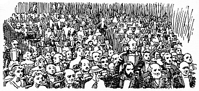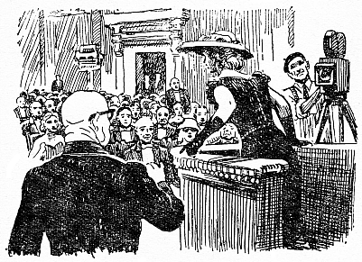 У публіці сум’яття переростало в паніку. Багато людей попідхоплювалися з місць. Деякі кореспонденти навіть погубили олівці й застигли у приголомшених позах. Тільки кінооператор старанно крутив ручку апарата, радіючи з несподіваного трюку, який забезпечував стрічці успіх сенсації.