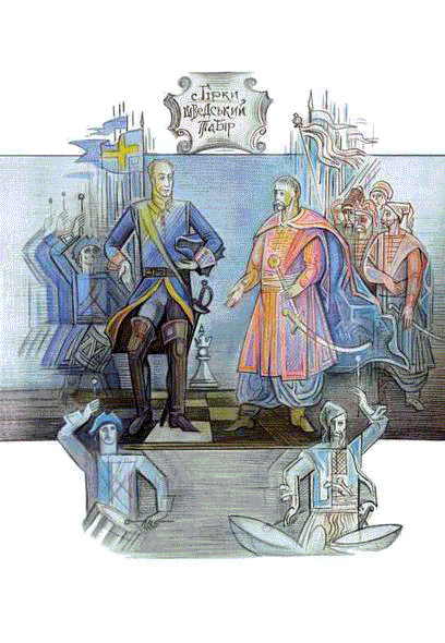 А за клейнодами йдуть їх оборонці, козаки і старшини, котрих Меншиков на місці смертю не скарав, а веде їх у тріумфальнім поході свому цареві на втіху, а їм на смертну кару в Лебедині. Нема між ними ні одного непорубаного й непокаліченого, цілого. Здоровими, значиться, не здались.