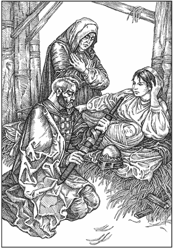 Для Добрині то не байдуже. Жінка, що стогнала й кричала в землянці, була його сестрою, в ній текла та ж сама кров, що й у Добрині, – кров Анта, діда Уліба, Воїка… їхня ж кров буде і в новонародженій дитині, кров полянського роду…