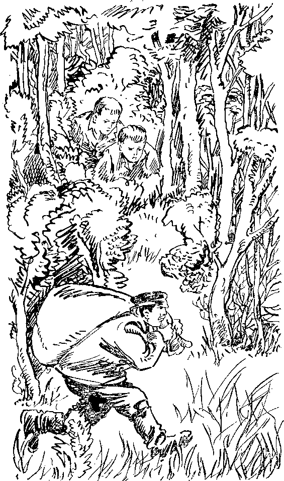 Шморгун стріпнувся, ніби його батогом уперіщили, оглянувся. Побачив Миколу і Сашка за кущем. Збагнув — за ним стежили. Однак спробував викрутитися.