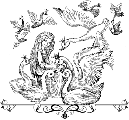 – Ідіть звідси і живіть, як вам заманеться, – звеліла королева. – Летіть птахами, що не мають голосу.
