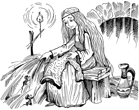 Маленькі мишки бігали по підлозі – вони носили кропиву до Елізиних ніг, намагались їй допомогти. А дрізд сів на вікно потойбіч ґрат і співав цілісіньку ніч так солодко, як тільки вмів, щоб додати їй наснаги.