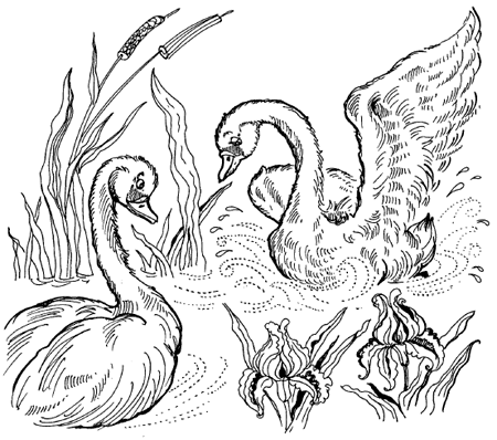 І каченя попливло до лебедів. Вони помітили чужинця й, залопотівши крилами, кинулись до нього.