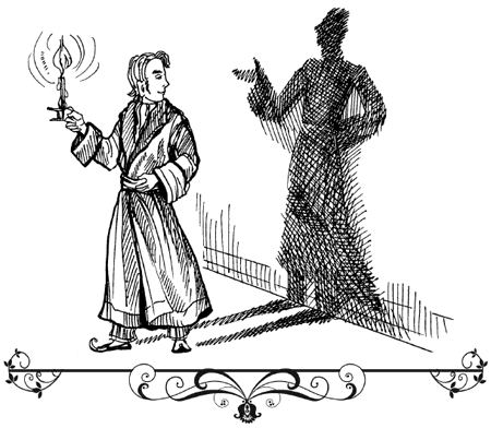 – Ваша королівська високість, певно, вже почувається ліпше й поступово видужує від своєї хвороби, – сказав він. – Мені довелось довідатись, що ви скаржитесь на надміру гострий зір, але щось у цьому випадку він вас підвів. Так сталось, що я маю найбільш незвичайну тінь із усіх, які тільки можна собі уявити. Бачите цього чоловіка, який повсюди тиняється за мною? Хороші господарі зазвичай дбають, щоб їхні слуги мали лівреї, пошиті з тканини, навіть кращої за їхнє власне вбрання. Тож і я одягнув тінь, наче справжню людину. А ще ви можете помітити, що я віддав йому власну тінь, – він тепер користується нею, немовби власною. Це досить дороге задоволення, але я полюбляю оточувати себе незвичними речами.