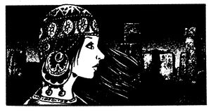 Спочатку на нього набігло багатоголосся. Тисячі голосів перемовлялися десятьма мовами, а очі яснобаченника озирали землі й доли з висоти орлиного лету. Брат Янгель змусив себе промкнутися крізь гармидер і уявити чорняву дівчину із знаком Сварги [87] на грудях. Спочатку ця дівчина була схожою на його старшу сестру, але раптом обличчя її змінилося, знак Сварги щез. Янгель побачив юну красуню в золотій діадемі Верховної Жриці. Чоло Верховної Жриці Курана вінчав Камінь Богині Бау, вмонтований у діадему. На жриці не було жодного одягу і Янгелеві стало спекотно.