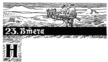 Спочатку хлопці не надавали цьому значення. В хаті їм було тепло й затишно, і вони знали, що мають досить харчів на чорний день. Попервах їм навіть приємно було сидіти поряд з собаками перед відкритим вогнищем і балакати чи робити якусь дрібну роботу, прислухаючись до несамовитого завивання вітру надворі.