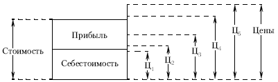 В хозяйственной практике может быть несколько уровней рыночных цен в сопоставлении со стоимостью и ее составными частями.