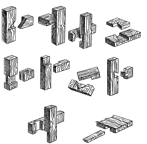 Рис. 28. Возможные варианты соединения деревянных деталей