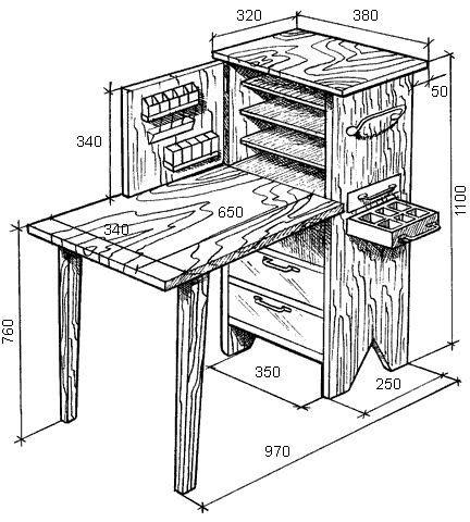 Основой верстака служит шкаф, изготовленный из досок толщиной 10–12 мм или 16?миллиметровой фанеры (Рис. 29).