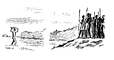 Кумало проснулся. Словно стая фламинго, над золотым горизонтом плавали легкие розовые облака. На далеком лесистом берегу двигались африканцы с винтовками и копьями, с мечами и круглыми щитами. Среди них были и солдаты. Нет, это не войска. Кумало узнал партизана с деревянным диском в мочке уха, приходившего в его хижину. Впереди всех, поставив ногу в ботинке на кочку, стоял человек с широким носом. Тот, кто допрашивал его в мертвом селении. На груди его висел автомат, Это друзья! Люди громко перекликались. Их было много. Они пришли на помощь.