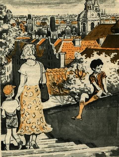 Вот, например, я изображаю из себя владельца ранчо, путешествующего по Европе и как раз приехавшего в Прагу. Мне хотелось бы осмотреть пражские достопримечательности. Ким становится моим гидом. Он должен меня сопровождать и обо всем рассказывать. И вот братишка раздобывает книжки о древних пражских замках и костелах, отмечает на карте Праги их местоположение, мы бродим по городу, и Ким мне рассказывает, рассказывает… Я делаю вид, что немного понимаю по-чешски, специально коверкаю слова, и Ким очень весело смеется.