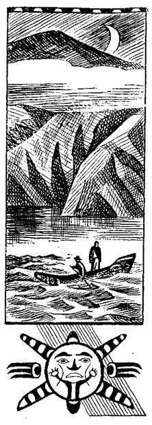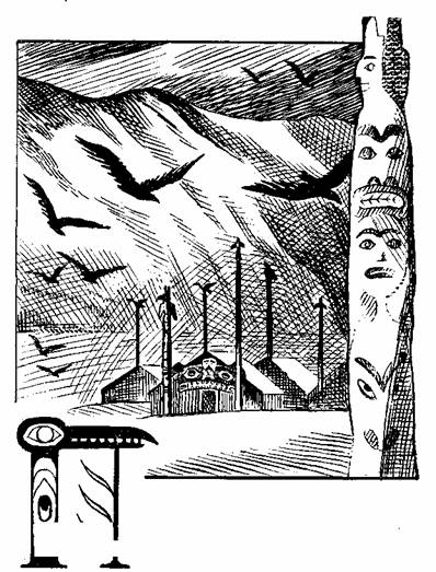 Индейцы, заметив лодку, выхватили из костра пылающие ветви и застыли в торжественном молчании. И Загоскин увидел девушку-тойона Ке-ли-лын. Она в алом одеянии и кольчуге из мамонтовой кости стояла возле самого костра, и по ее лицу пробегали тени от дыма и свет пламени. И вновь сила, которая была крепче его сердца, неудержимо повлекла Загоскина на зов костра. Ему сначала казалось, что лодка погружается в грохочущий пенный водопад. Потом он перестал сознавать происходящее.