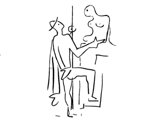 Расходятся в разные стороны. Но Эдип оборачивается.