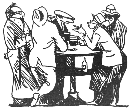 Последняя мысль привела Евстигнеича к буфетной стойке, где вокруг него табуном сгрудились знатоки.