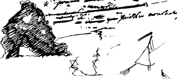 «…На листе № 28 тетради № 2365, среди грудящихся друг на друге рисунков – женских профилей, силуэтов и портрета Гёте – значатся несколько изобличающих слов: «Святой дух призывает Гавриила, открывает ему свою любовь и производит в сводники. Гавриил влюблен. (Это вычеркнуто.) Сатана и Мария» [14] .