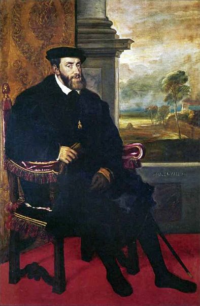 Однажды в беседе с мастером император Карл V признался, что устал от вида пролитой крови и живет только ожиданием предстоящей встречи с незабвенной своей супругой. Выслушав его признания, Тициан испытал к Карлу чувство искреннего сострадания, которое выразил в «Портрете Карла V в кресле» (1548, Старая Пинакотека, Мюнхен). Император изображен на фоне унылого безлюдного пейзажа, от которого веет холодом и тоской. Он сидит в кресле в черном одеянии, словно забыв снять одну перчатку. Красный цвет пола очень контрастирует с цветами в его одежде и головном уборе. Карл V очень грустен, задумчив и одинок.